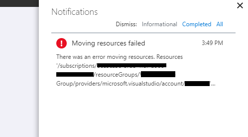 This morning I tried to move our VSTS (Visual Studio Team Services) account, from one Resource Group, to another. The reasoning of this is that all of our services that are used to managed everything else (i.e shared) are contained in one Resource Group.
